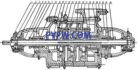 19 | 平衡 | 20 | 平衡环 | 21 | 出水段 | 22 | 尾盖 | 23 | 轴 | 24 | 轴套乙 |